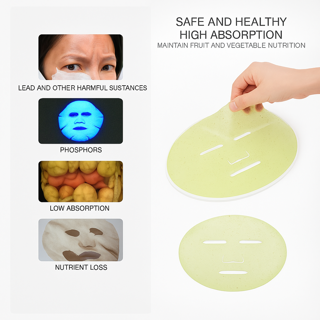 The hidden risks of store-bought sheet masks with the purity of a freshly made GlowPot mask. While packaged masks can contain harmful substances, artificial phosphors, and lose nutrients over time, a GlowPot mask is created on the spot from real fruits and vegetables, ensuring high absorption and maximum vitamin benefits for your skin.