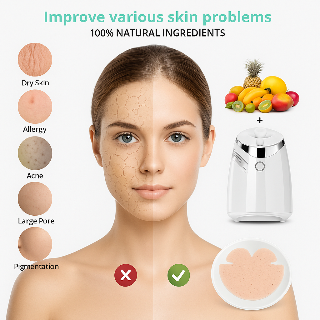 Before: Dull, tired skin. Uneven tone. Uncertain ingredients. After: Dewy, calm, radiant glow — with the peace of mind that you made it yourself. With the Vegetable Mask Machine, self-care becomes cleaner, smarter, and more fun. It’s not just skincare — it’s skin confidence in a button. Start creating your custom glow masks today — your skin will thank you.